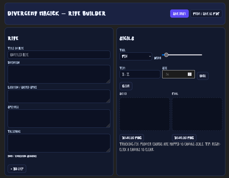 Divergent Magick — Rite Builder