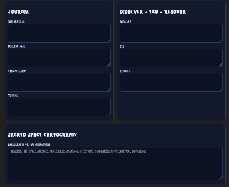 - Utilize the DISOLVER ECO RESONAR method for Ritual Ruination and Revelation